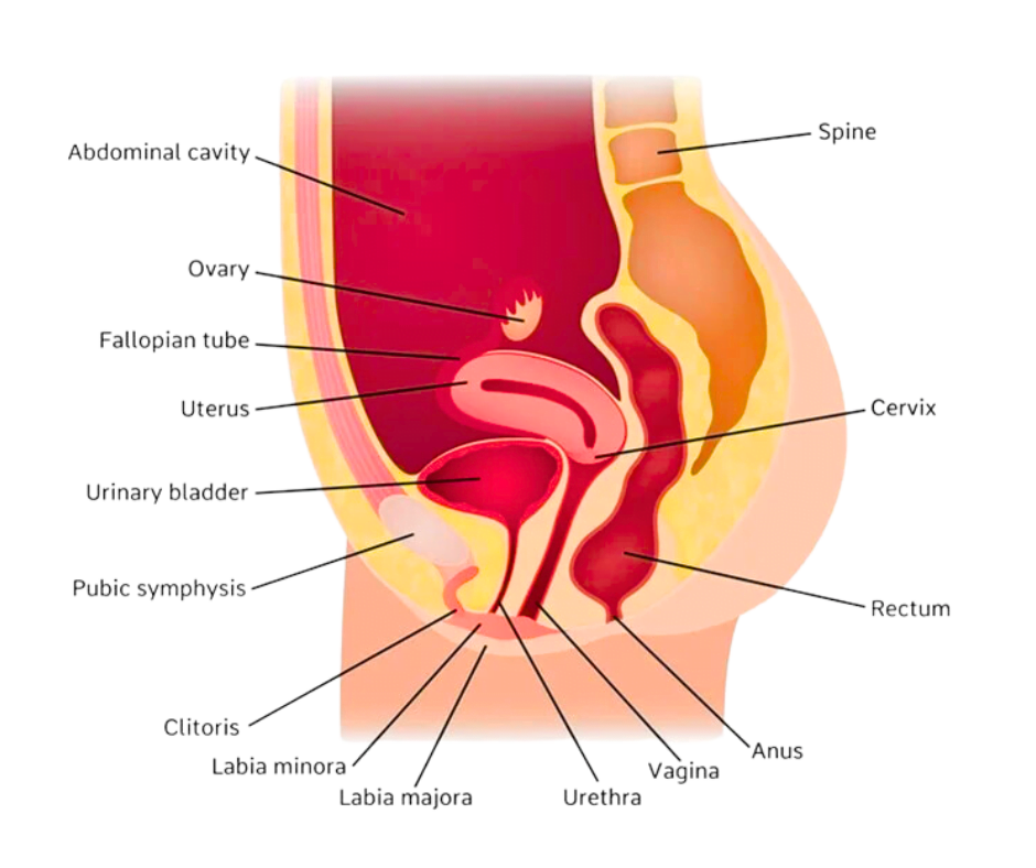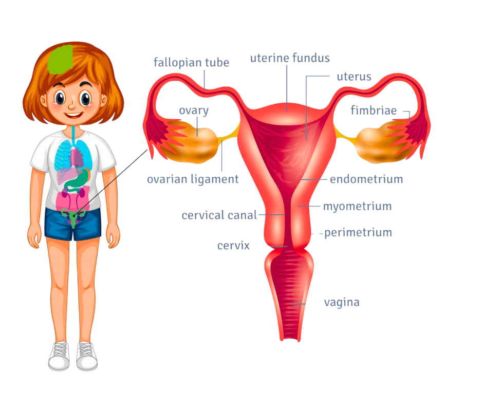 👉 The human female reproductive system is specialised to support the process of gametogenesis, ovulation, fertilisation, pregnancy, birth and child care. The parts of the female reproductive system are: