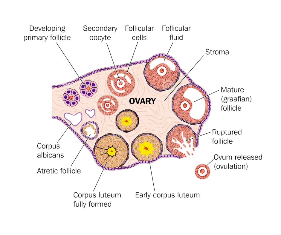 👉 The primary follicles in the ovary grow to form a fully mature Graafian follicle.