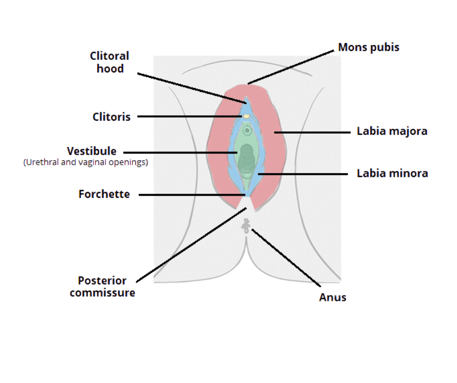 👉 They consist of: mons pubis, labia majora, labia minora, hymen and clitoris