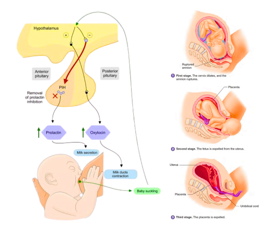 o Oxytocin stimulates stronger uterine contractions which stimulates more production of oxytocin