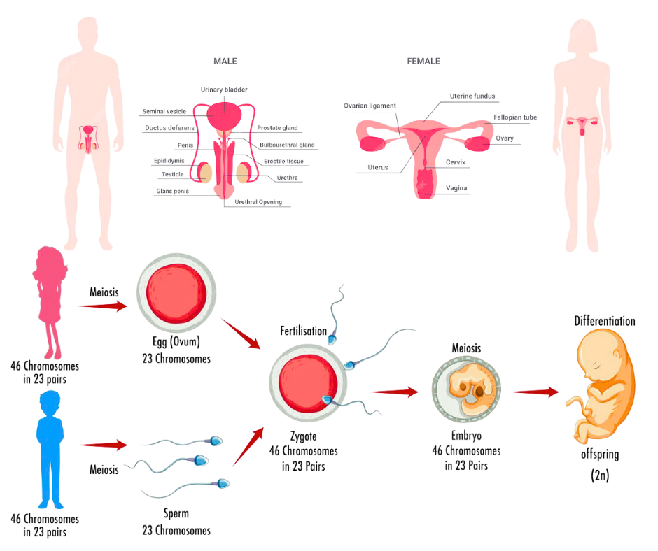 • The sex of the foetus is determined by the sex chromosome present in the sperm. As the female is