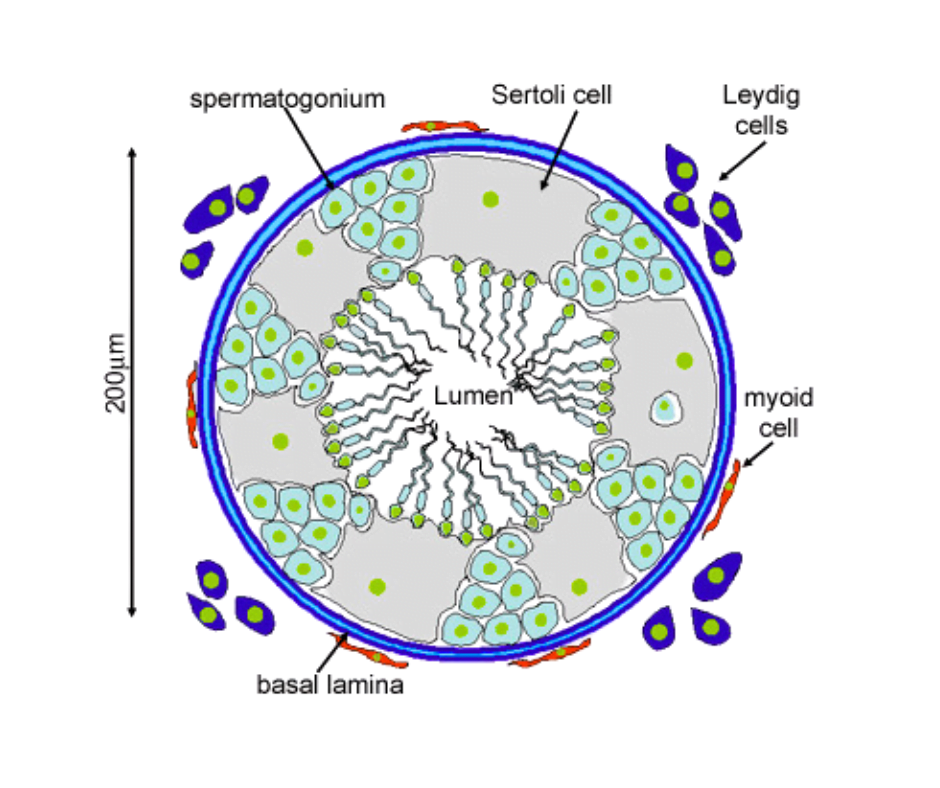 ✍️ The inner lining of each seminiferous tubule consists of two types of cells: